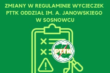 PTTK Sosnowiec informuje, że nastąpiły zmiany w Regulaminie Wycieczek PTTK Oddział im. A. Janowskiego w Sosnowcu z prośbą o uważne zapoznanie się z regulaminem. Regulamin znajdziecie w zakładce – Regulamin wycieczek i klauzula RODO. PTTK Sosnowiec